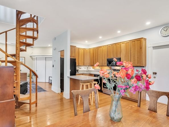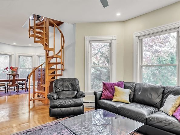 Bright & beautifully renovated two-level, 2 bedroom, 1 bath condo in a charming Victorian home just steps from Porter & Davis Square. The open first floor features high ceilings, bay windows, a modern kitchen with induction stove and breakfast bar, a dining area, & a separate living space perfect for entertaining. A spiral staircase leads to a bright loft that can flex as an office or 2nd bedroom, while the upstairs primary bedroom offers a serene retreat with a lovely stained glass window. The wrap-around private garden & koi pond are truly an urban oasis! Features include:• Gleaming hardwood floors throughout • High ceilings on both levels • Tall Bay windows • Original Victorian rosette trim • Ceiling fans • Private garden with Koi pond • Garage parking for one car • Nest thermostat • Laundry and storage in basement • Walk Score of 95, close to Red Line, bus lines, shops and restaurants. This unique home blends historic charm and modern convenience in a prime Cambridge location.