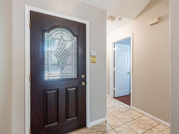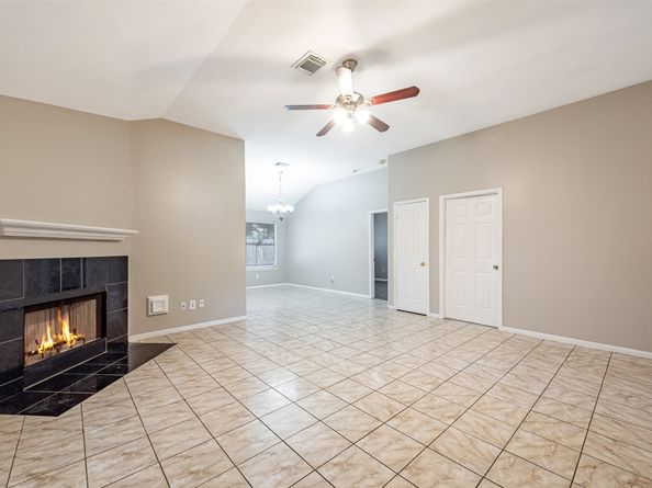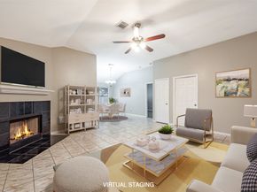 Stunning One-Story Home in Kingsbridge – Move-In Ready! This beautiful one-story home offers a perfect split floorplan and has been fully remodeled with modern touches. You’ll fall in love with the details: Elegant ceramic tile flooring flows through the main areas. High ceilings and plenty of natural light, Cozy fireplace in the living area. Fresh designer paint, 2" faux wood blinds, Lovely leaded glass front door makes a statement. Kitchen with light cabinetry, ceramic tile backsplash, neutral counters, and a large pantry. Spacious master suite with huge walk-in closet, separate shower, garden tub. Laminate Flooring. Manicured lawn and palms in front. Small fenced backyard — ideal for entertaining outdoors. Move right in!