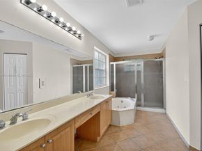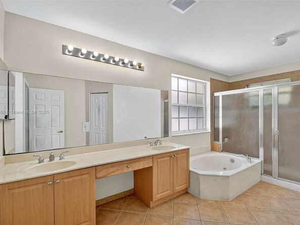 Spacious 5BR, 2.5BA home in Madison Green, Royal Palm Beach, with 3,347 total sq ft (2,768 under air). This property offers key 2023 updates plus room for customization. Upgrades include granite flooring on the first floor, marble-look porcelain tile, new baseboards, crown molding, modern lighting, and a Lennox energy-efficient HVAC. The kitchen features high-gloss cabinetry and a large island, prepped for marble countertops, waterfall edge, and farmhouse sink. Upstairs, a spa-style bath includes dual showers and a floating vanity, while the primary suite has ample space with a bath ready for your design. Outside, enjoy a private backyard with resurfaced pool/spa, decorative tilework, water spouts, and raised seating. Madison Green provides resort-style amenities, golf, and low HOA fees.