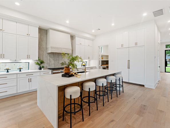 Enjoy premium living in this beautifully designed new construction home by Cedro Homes, located in the heart of Oak Forest. This home is designed to offer a rare combination of luxury, function, flow and future-ready amenities. Open-concept floor plan with high (11-foot) ceilings, expansive dining and living areas- including 10 foot sliding doors overlooking the covered patio and backyard. Gourmet kitchen is equipped with Thermador appliances, quartz countertops & large pantry with a sink. The downstairs bedroom with oversized windows has an ensuite bath; or the room can be utilized as a formal study. There is also a luxurious powder room for guests. The spacious primary suite can easily accommodate a sitting area. It features a spa-inspired bath, spacious shower & two oversized, separate walk-in closets. This home is generator ready, elevator ready, & prepped with outdoor kitchen connections—offering peace of mind & future flexibility for upscale living. Not in Flood-Plain!